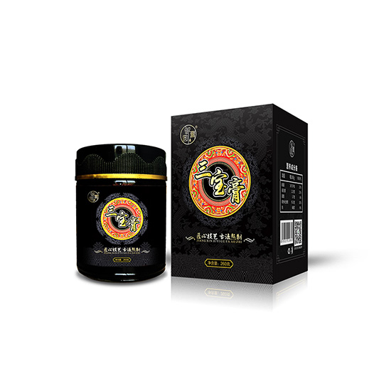 產(chǎn)品描述:【品名】三寶膏【類別】植物飲料【配料】蜂蜜、黑芝麻、黑豆、黑米、黃精、枸杞子、桑椹、百合、大棗、茯苓、蓮子、益智仁、核桃仁、杜仲雄花、人參(人工種植)、純化水【食用限量】杜仲雄花食用限量:6克/天;人參(人工種植)食用限量:3克/天?!緝艉俊?60